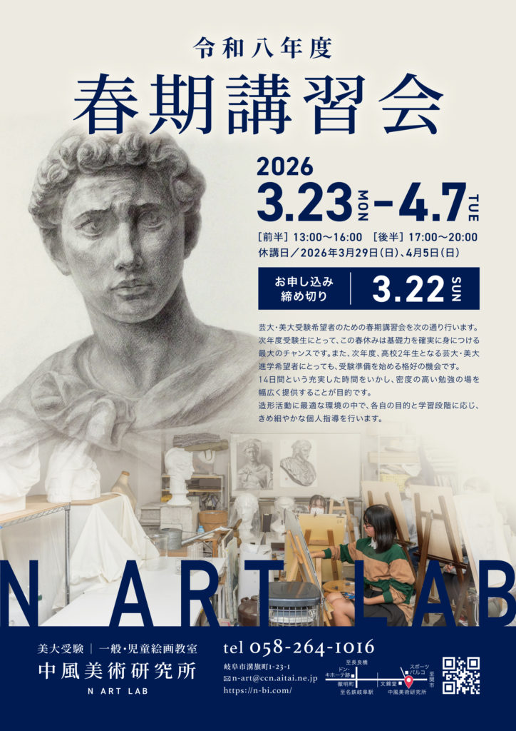 次年度受験生にとって、この春休みは基礎力を確実に身につける最大のチャンスです。また、次年度、高校2年生となる芸大・美大進学希望者にとっても、受験準備を始める格好の機会です。